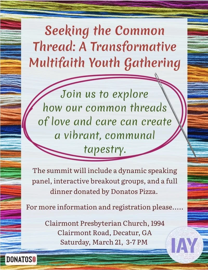 “The Common Thread” is a metaphor for the individual stories, faiths, and backgrounds that make up our community. Rather than a finished tapestry, we view our community as a work in progress where many hands weave together diverse threads to create a collective piece. Each thread plays a unique and necessary role in making the whole tapestry come to life.